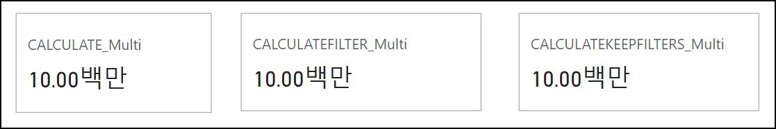 세 가지 측정값 모두 카드 시각적 개체에서는 동일한 결과를 표시해줍니다.