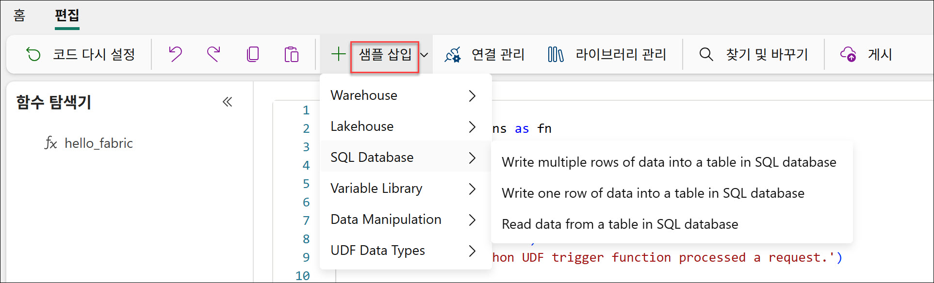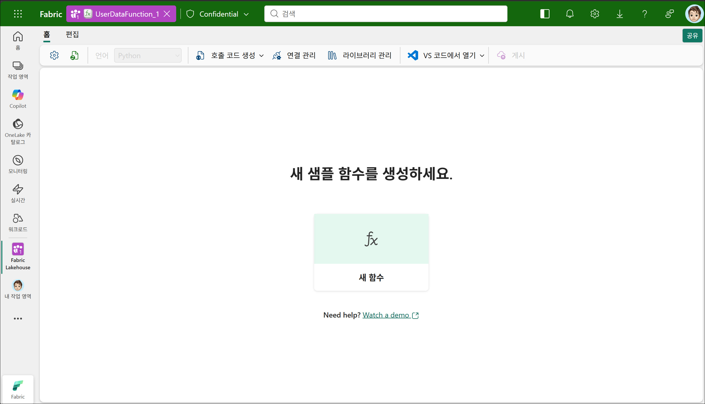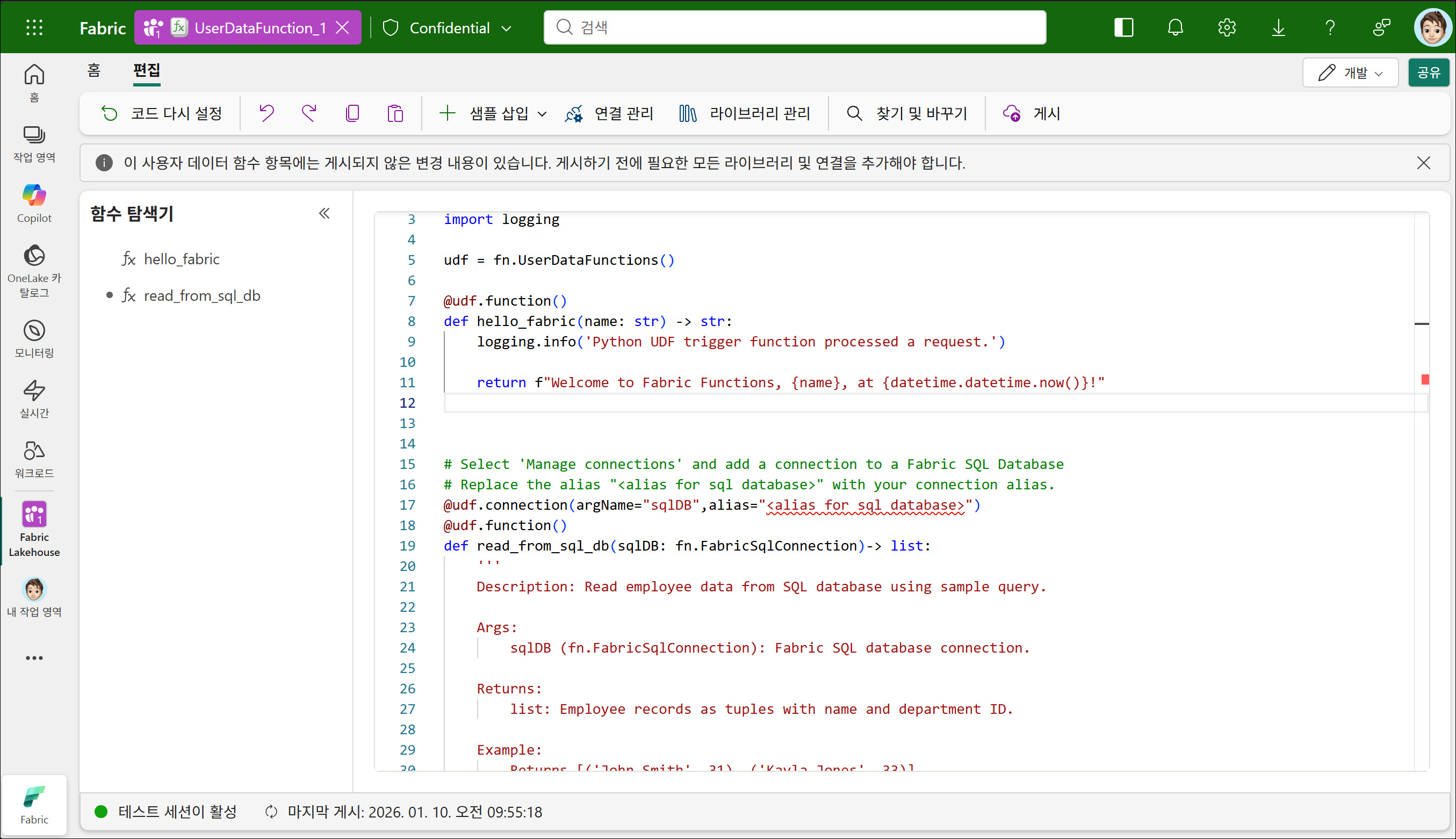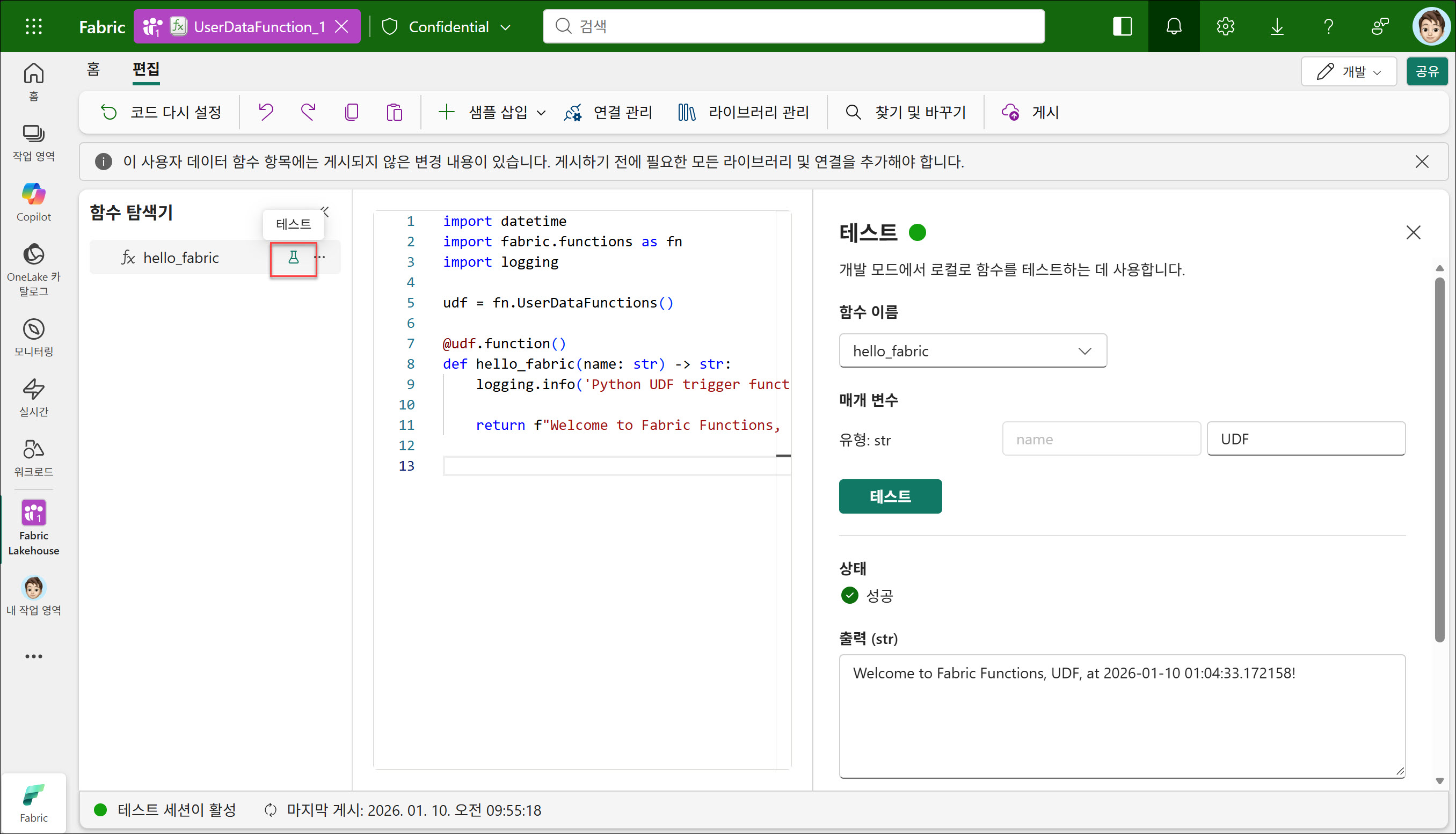 여기서는 간략히 Fabric UDF를 생성하고 테스트해보겠습니다.