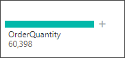 높은 값을 선택하면 주문량 중에서 가장 큰 값에 해당하는 부분이 나타납니다. 설명 기준의 필드 중에서 가장 높은 값에 해당하는 2018년 53,449으로 년 필드가 표시되며 상단에 안내 아이콘이 나타납니다. 아이콘에 마우스를 올리면 2018년에 OrderQuantity가 가장 높은 값이라고 알려줍니다.