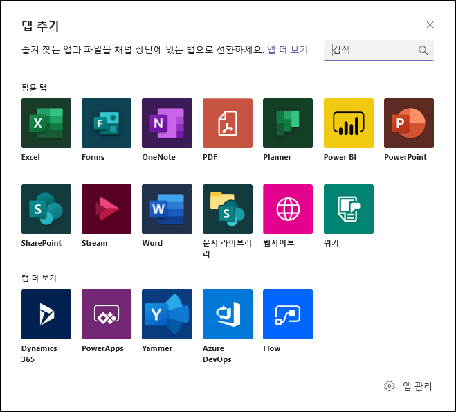 Microsoft Teams에서 새 탭을 추가하려고 하면, Power BI 탭을 확인할 수 있습니다.