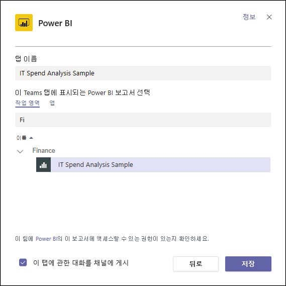 Microsoft Teams에서 업데이트된 Power BI 탭