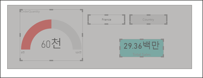 보고서에서 여러 시각적 개체를 선택하려고 할 때, 마우스로 쭉 드래그하여 선택할 수 있습니다. 또한 Ctrl 키로 클릭하여 선택할 수도 있습니다. 마우스로 한꺼번에 드래그하여 선택하고 나서 위치를 이동하거나 그룹으로 만들고 복사할 수 있습니다. 소소한 기능이지만 유용합니다.