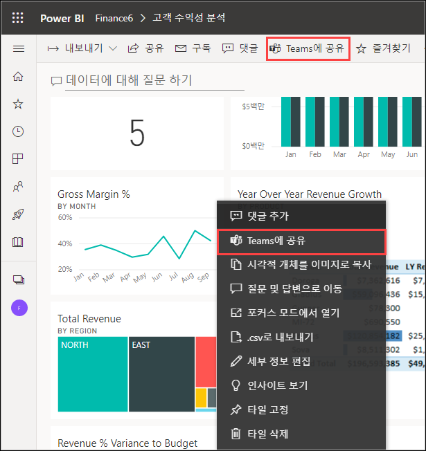 Teams에 공유는 Power BI 서비스에서 손쉽게 공유할 수 있습니다. 하지만 더 효과적으로 나타나게 할 수 있습니다.
