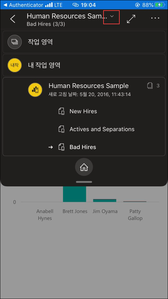 Power BI 모바일 앱 머리글과 탐색 업데이트