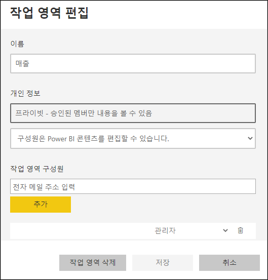 - Power BI 작업 영역 삭제