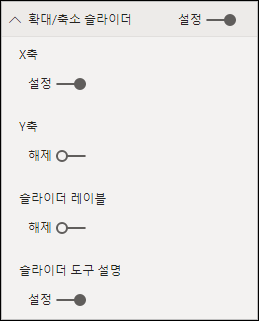 축에 확대/축소 슬라이더를 표시하려면 서식에서 설정을 하면 됩니다.