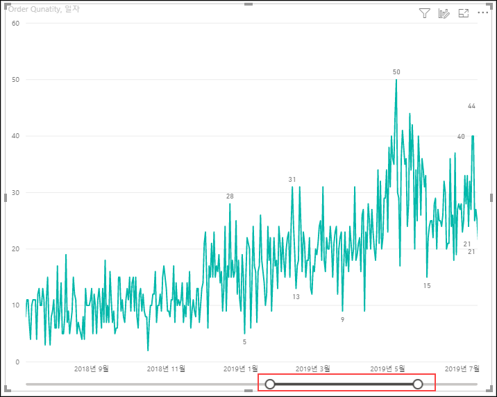 확대/축소 슬라이더는 X, Y 축에 슬라이더를 나오게 하여 보다 쉽게 데이터를 탐색할 수 있도록 하고 있습니다.