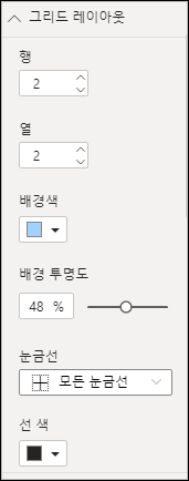 축소 다중 항목의 경우 서식, 그리드 레이아웃에서 배경색과 그리드, 선 색을 지정할 수 있습니다.