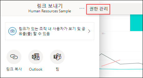 권한 관리로 이동하려면 공유 아이콘을 클릭하고 …을 클릭하여 권한 관리를 클릭하면 됩니다.