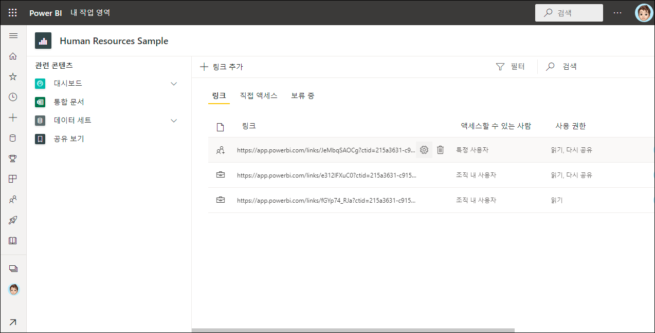 보고서를 공유하고 나서 권한을 회수하거나 링크를 다시 복사하거나 직접 액세스해야 합니다.