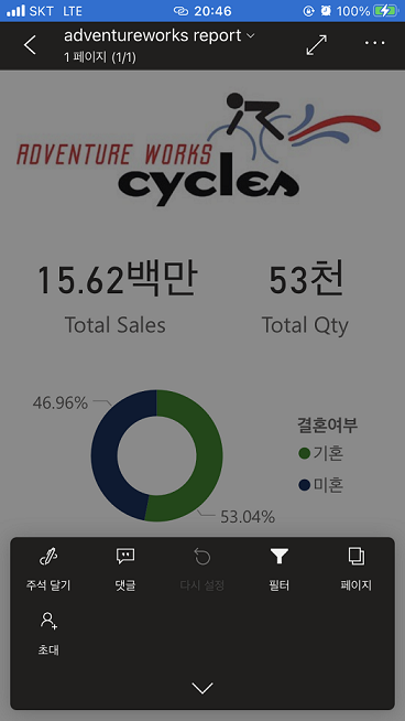 모바일 앱에서는 보고서에 Footer 메뉴가 업데이트되어 나타납니다.