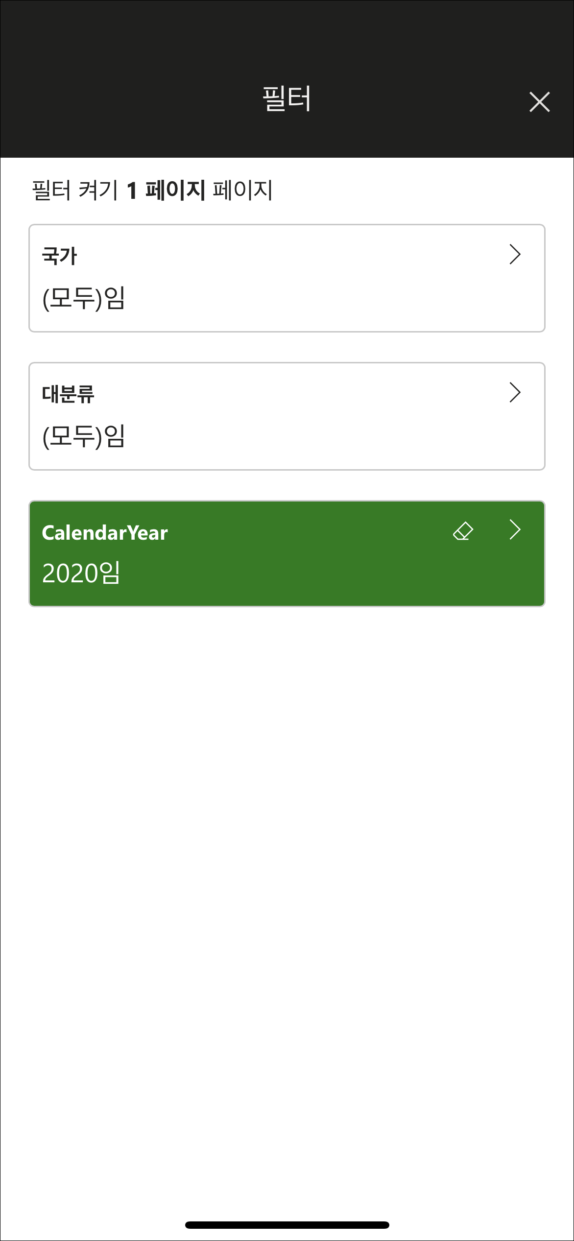 보고서에 보이는 것과 동일하게 새 필터 창이 적용됩니다.