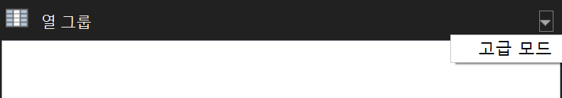 정적 행에 대해서는 고급모드로 변환하여 반복 속성을 설정하면 됩니다. 열 그룹에서 화살표를 클릭하여 고급 모드로 변경합니다.