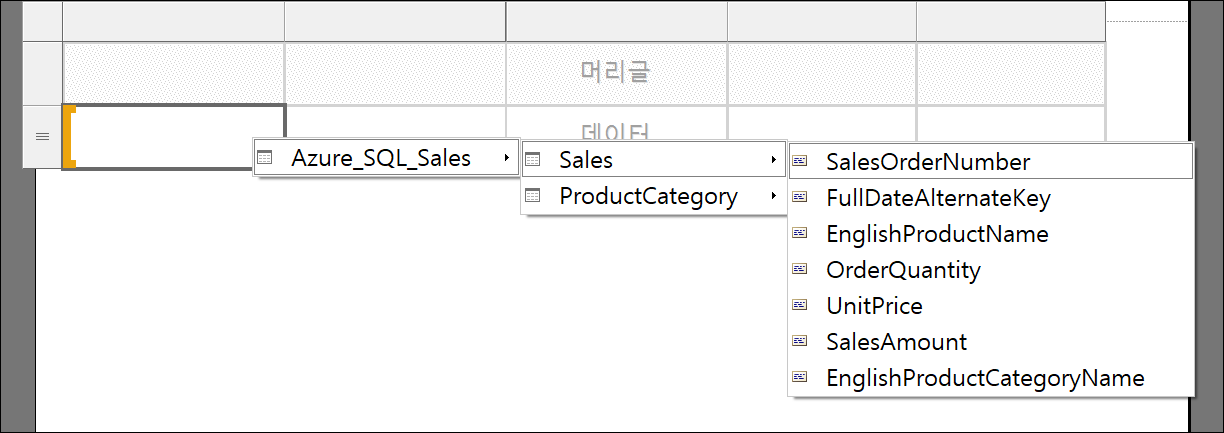 Power BI 페이지를 매긴 보고서(Paginated Report)(6) 디자인