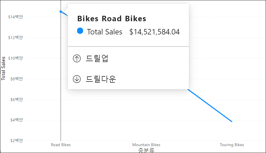 선형 차트 등 일부 차트에서는 최신 시각적 도구 모음으로 도구 설명에서 드릴 작업이 지원되지 않았는데, 이번 업데이트부터는 지원하고 있으니 확인해보십시오. 미리 보기와 보고서 설정에서 최신 시각적 도구 모음을 선택해야 합니다.