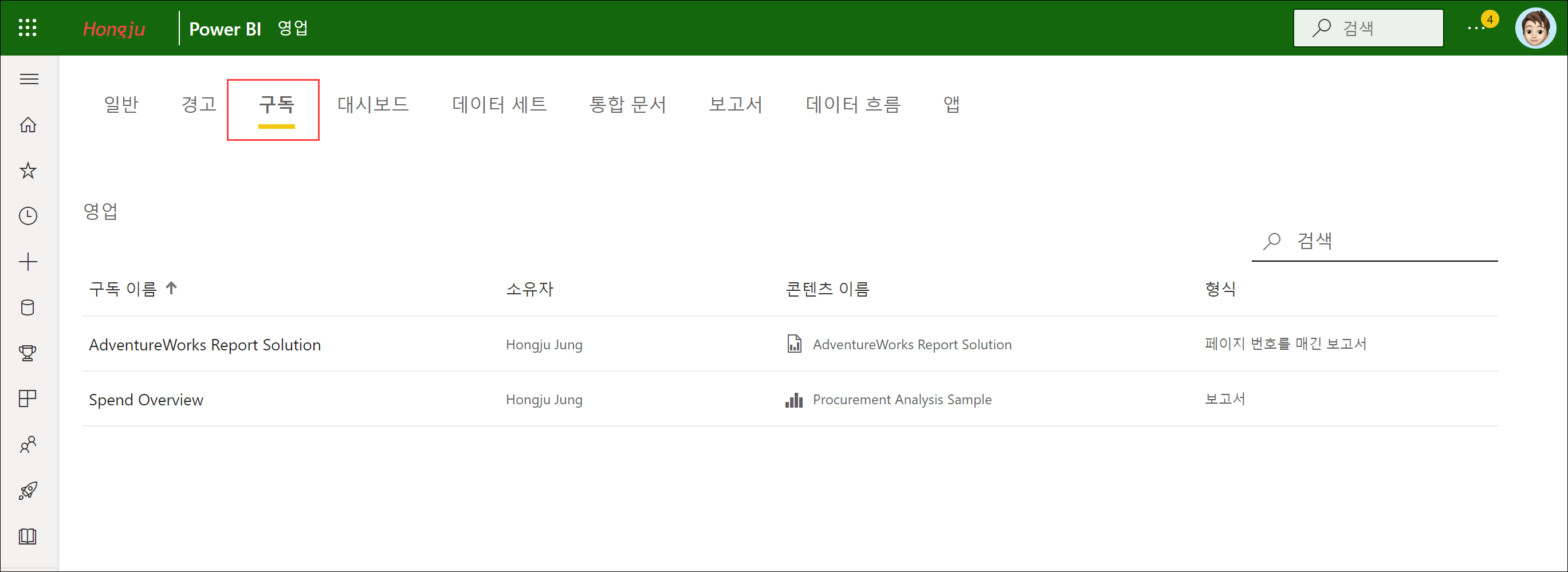 Power BI의 구독