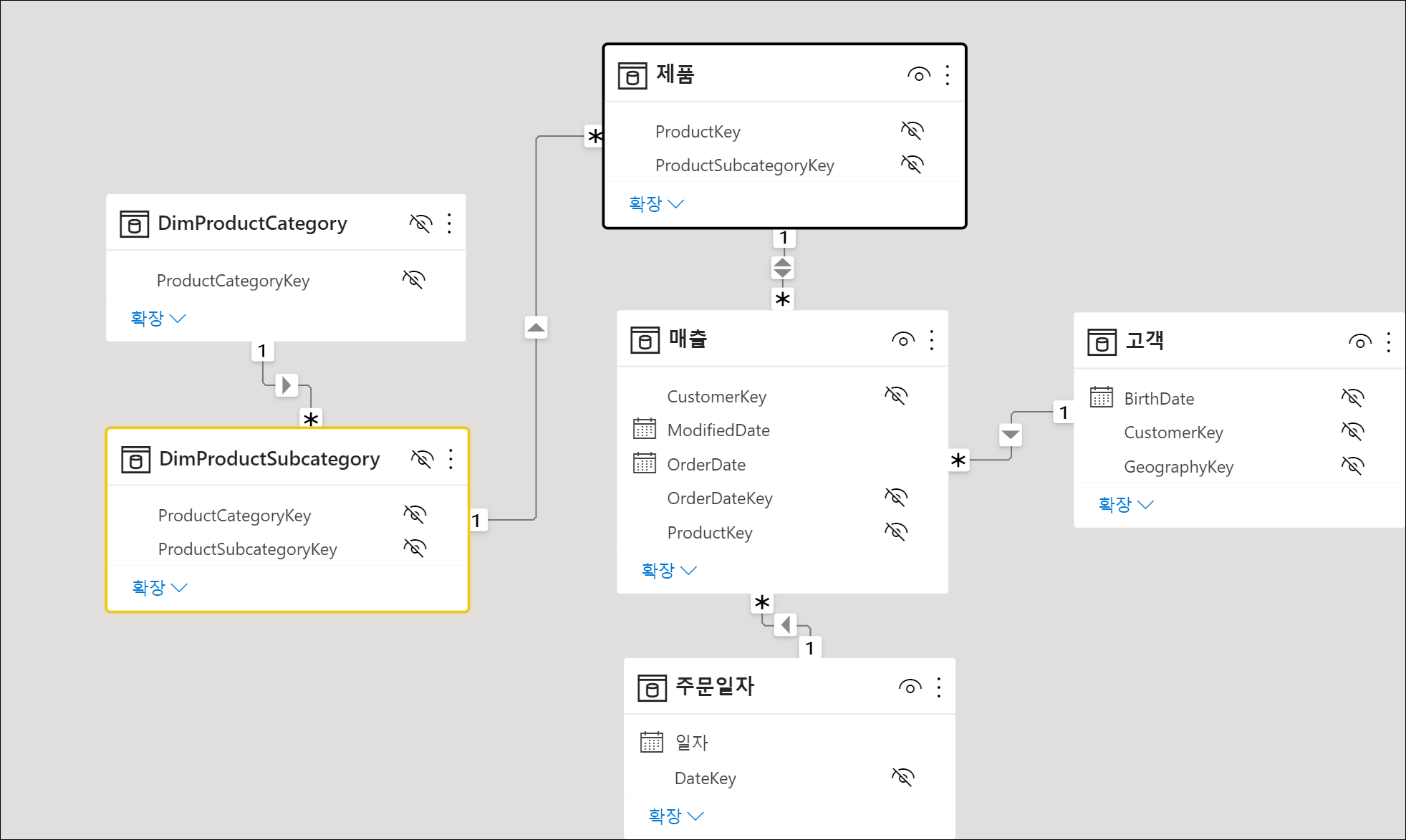 그래서 스타스키마 모델링, 교차필터를 단방향으로 설정하는 것이 일반적이며, 교차필터를 설정하는 경우 제대로 알고 설정해야 하며, 설정한 후 시각화 데이터를 검증해야 합니다!