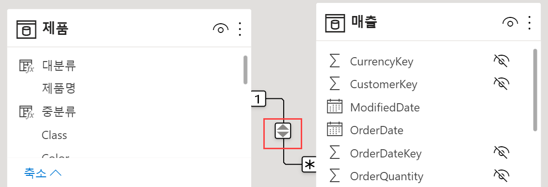 관계 설정과 교차필터 방향에 대한 내용은 여기에서 확인할 수 있습니다.