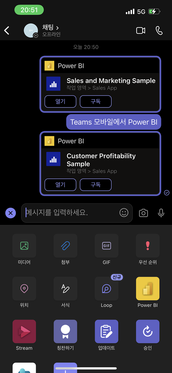 Teams 모바일 앱에서 Power BI