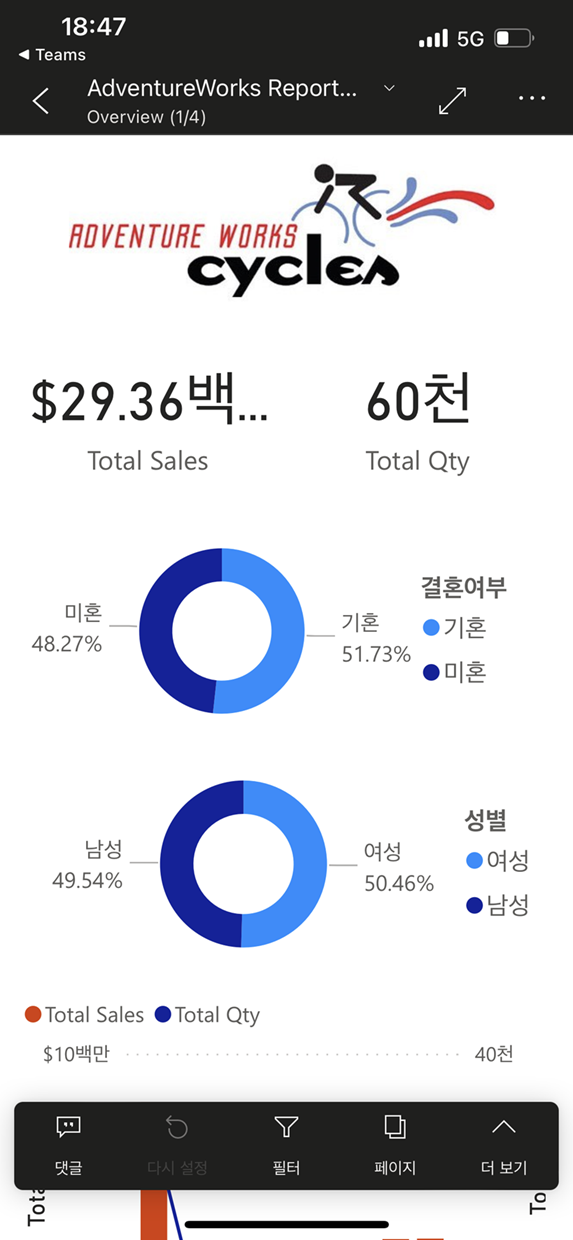 보고서를 클릭하게 되면 Power BI 모바일 앱으로 이동하여 보고서를 확인할 수 있습니다.