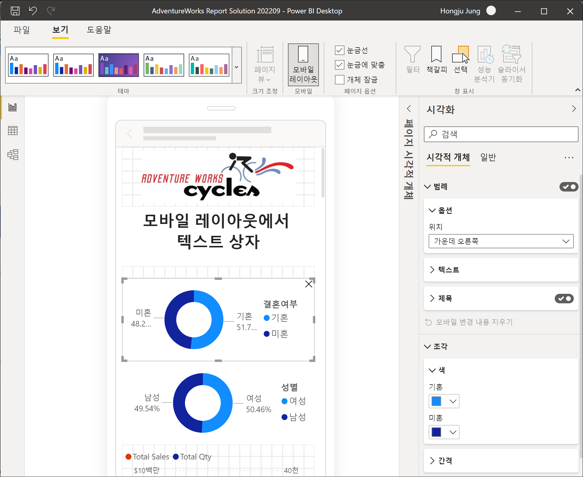[보기] 탭에서 [모바일 레이아웃]을 클릭하게 되면, 이전 버전의 Power BI Desktop에서는 아래와 같은 대화상자를 볼 수 있습니다.