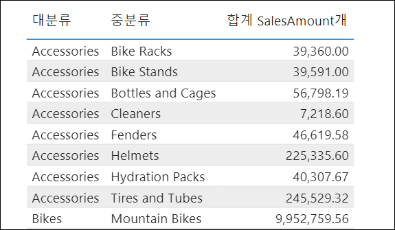 보고서 작성자에게 직관적으로 요약 유형을 표시해주므로 아주 좋은 업데이트라고 생각됩니다. 하지만 ‘합계 SalesAmount개’는 마음에 들지 않습니다.