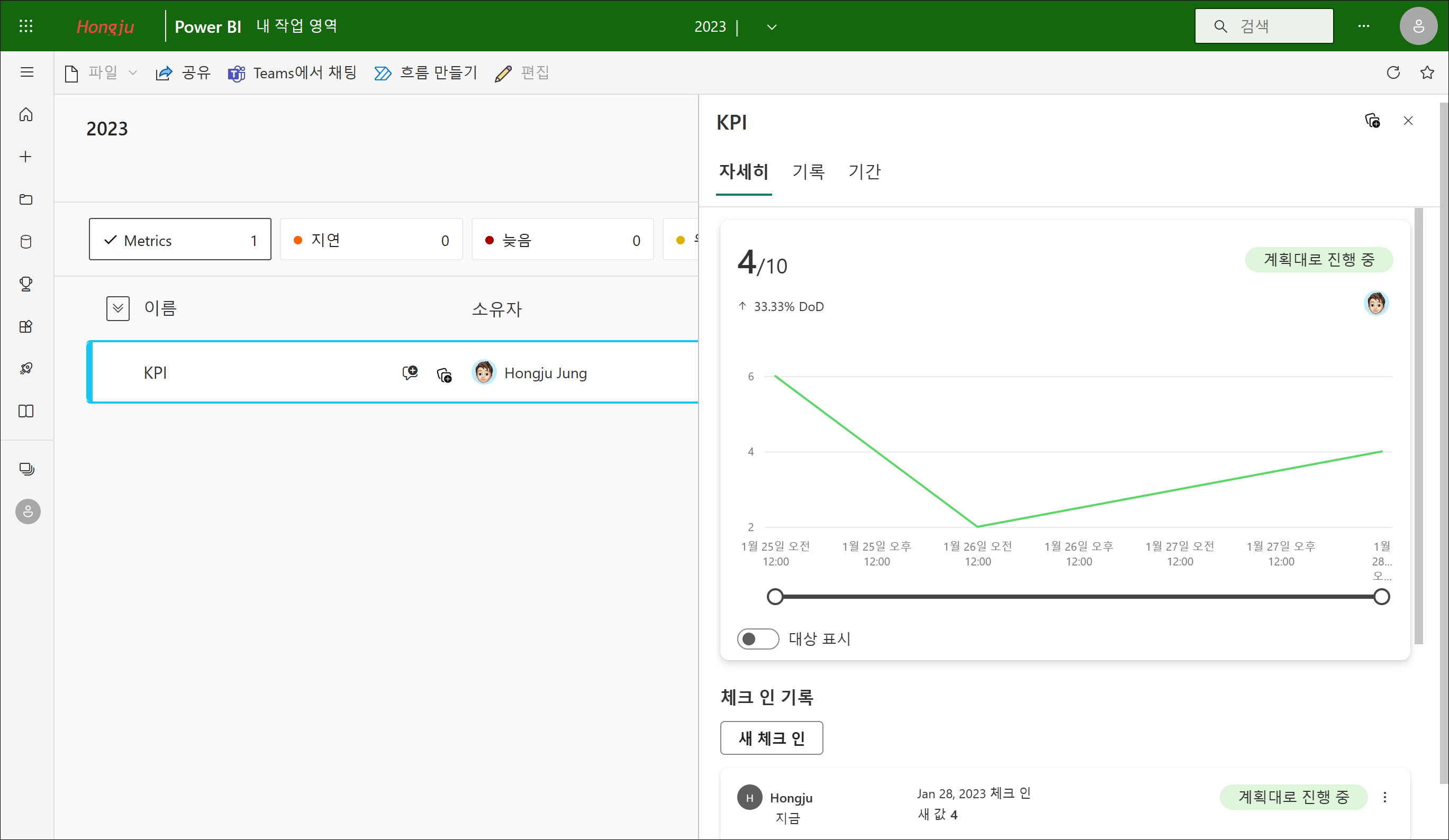 공유 받은 상대방은 해당 메트릭을 확인할 수 있고, 체크 인을 할 수 없습니다.