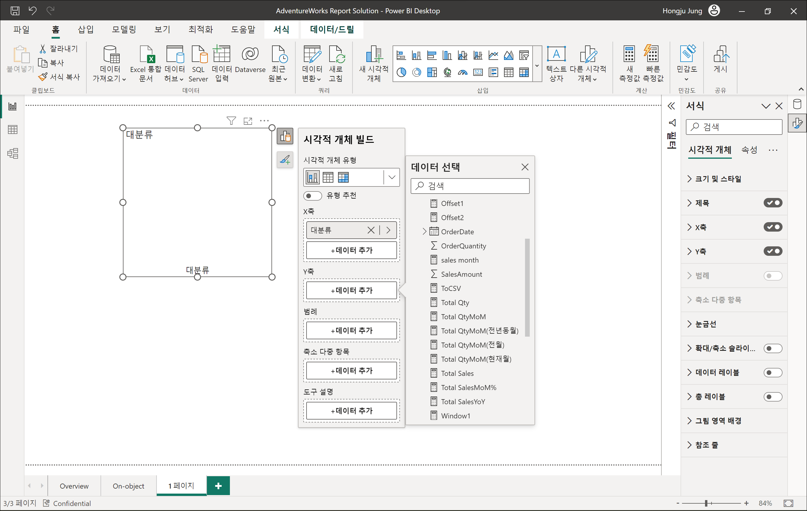 이전 보고서 디자인 환경은 서식이 너무 많아 초보자는 작업하기가 어렵다는 일부 애로사항이 있었는데요. On-object로 디자인 메뉴와 방법이 간소화해졌습니다. 이에 따라 처음에는 새로운 도구를 배우는 듯한 모양이 나오지만, 금방 적응되어 더 쉽게 느껴질겁니다.