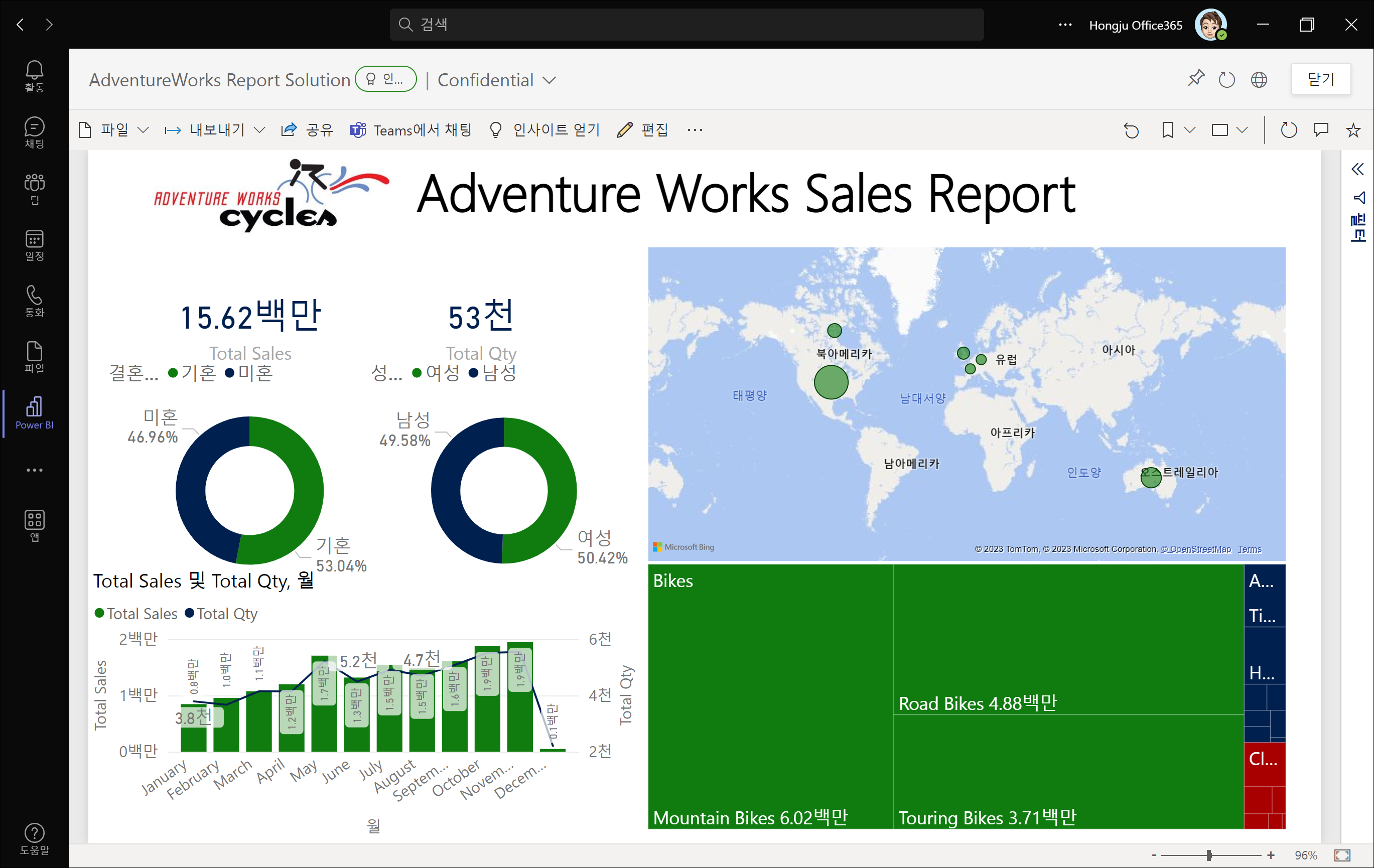 Teams에서 열기 아이콘을 클릭하게 되면, Teams용 Power BI 앱에서 스포트라이트된 보고서를 확인할 수 있습니다.