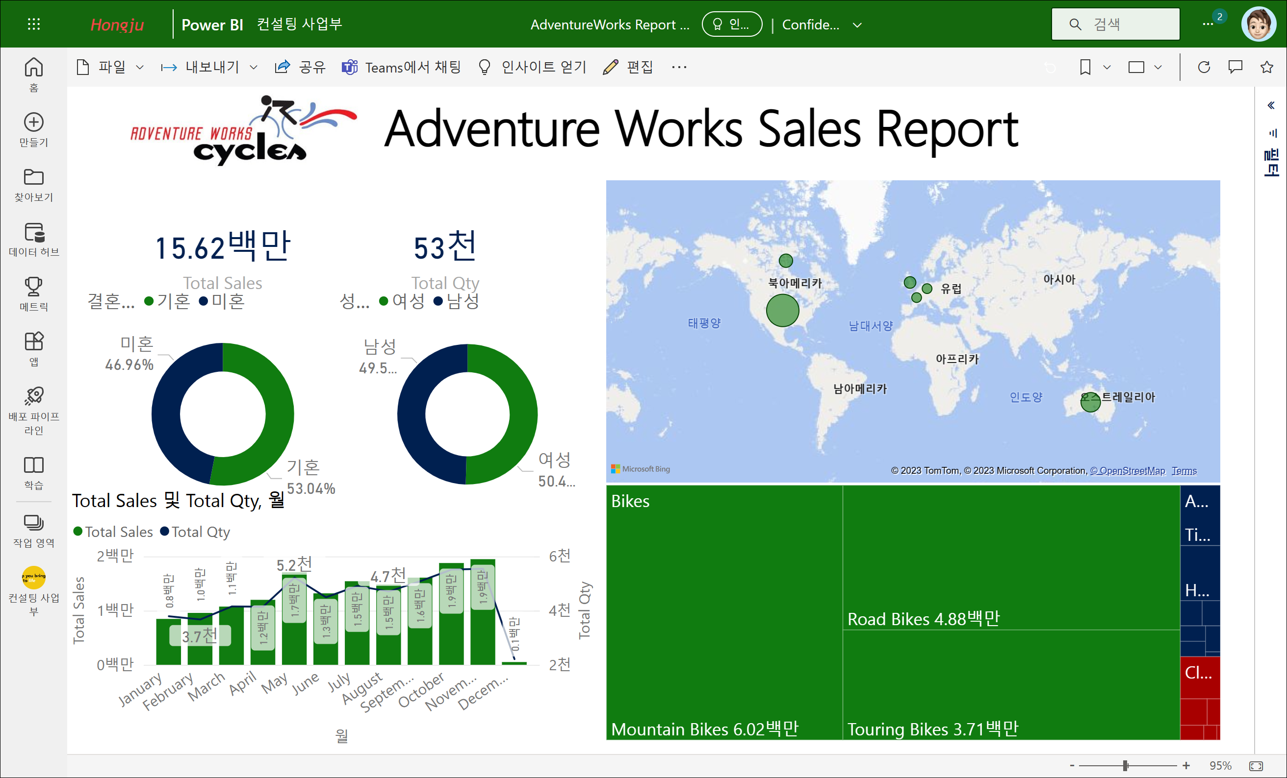 URL을 클릭하게 되면 Power BI 서비스로 이동하여 해당 보고서를 확인할 수 있습니다.