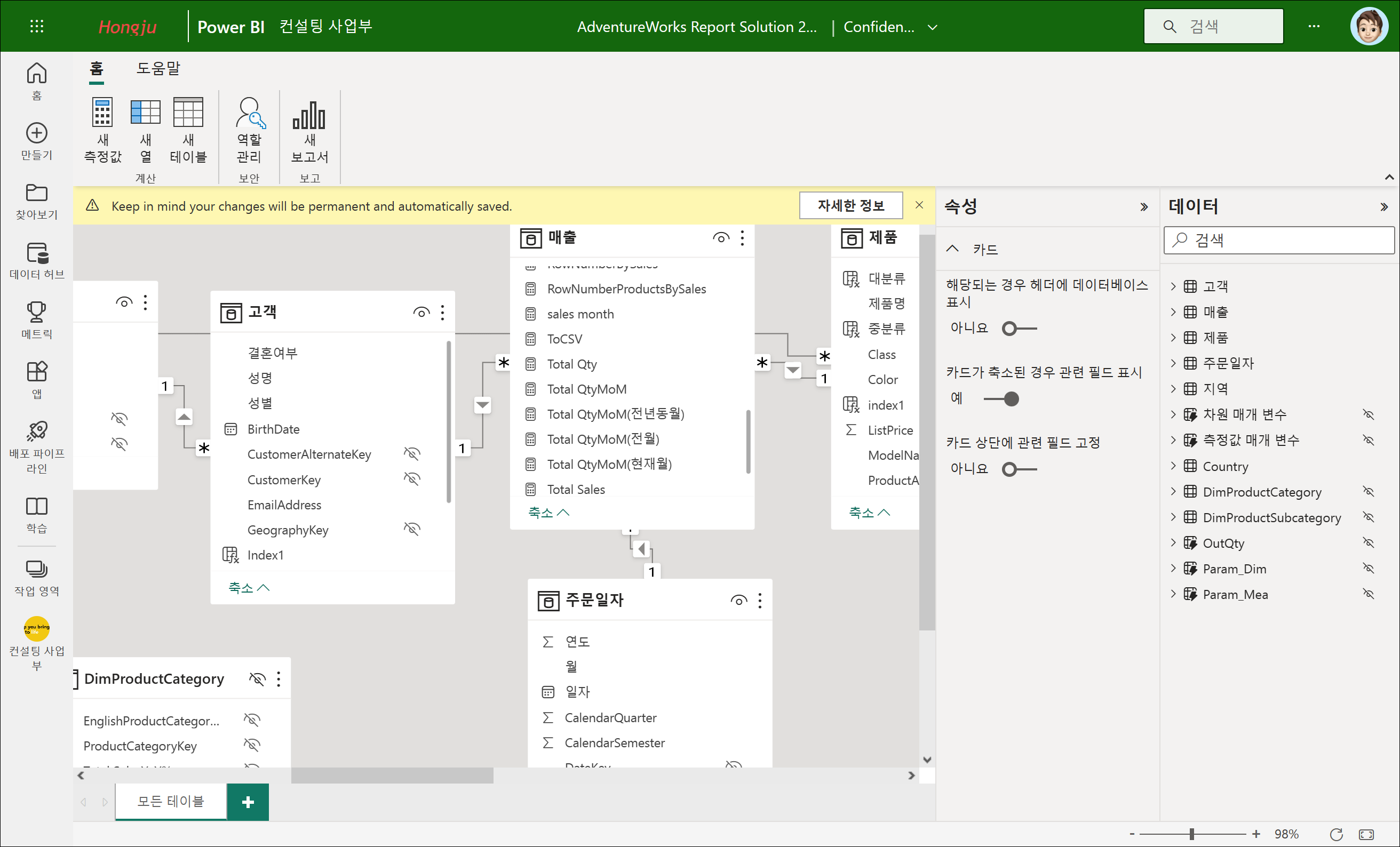 Power BI 서비스에서 데이터 모델 편집을 통해 변경사항을 더 쉽고 빠르게 적용할 수 있습니다.
