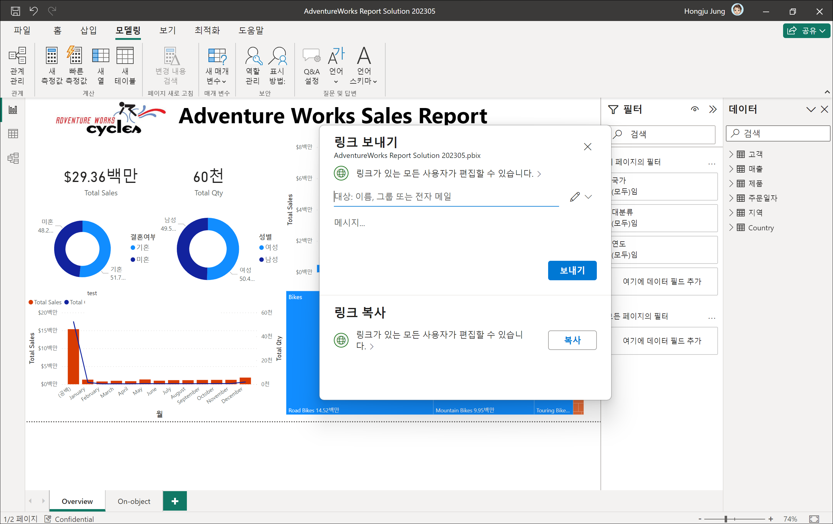 Power BI Desktop 파일을 OneDrive와 SharePoint에 손쉽게 저장하고, 공유할 수 있고 OneDrive와 SharePoint에서 Power BI Desktop 파일을 열고 공유할 수 있습니다.