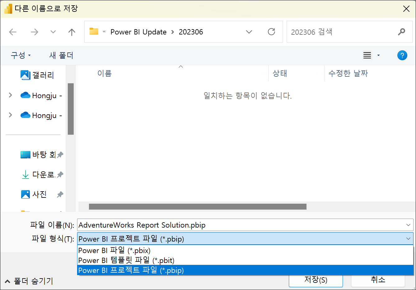 Power BI 프로젝트 저장 옵션