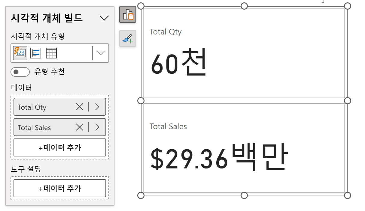 카드는 많이 사용하는 시각적 개체 중의 하나입니다. 카드는 제한적인 측면(여러 값 표시, 이미지 표시, 가로 레이아웃 등)이 일부 있어 새 카드(미리 보기)를 제공하고 있습니다. 한번 사용해보면 제한적인 측면이 많이 개선된 것을 바로 알 수 있습니다.
