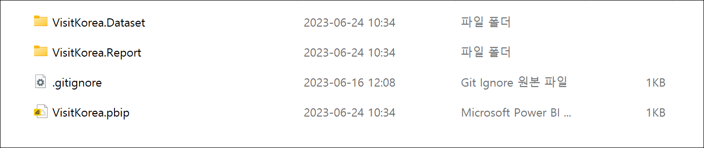 Power BI 프로젝트 저장 시 폴더 및 파일 구조는 다음과 같습니다.