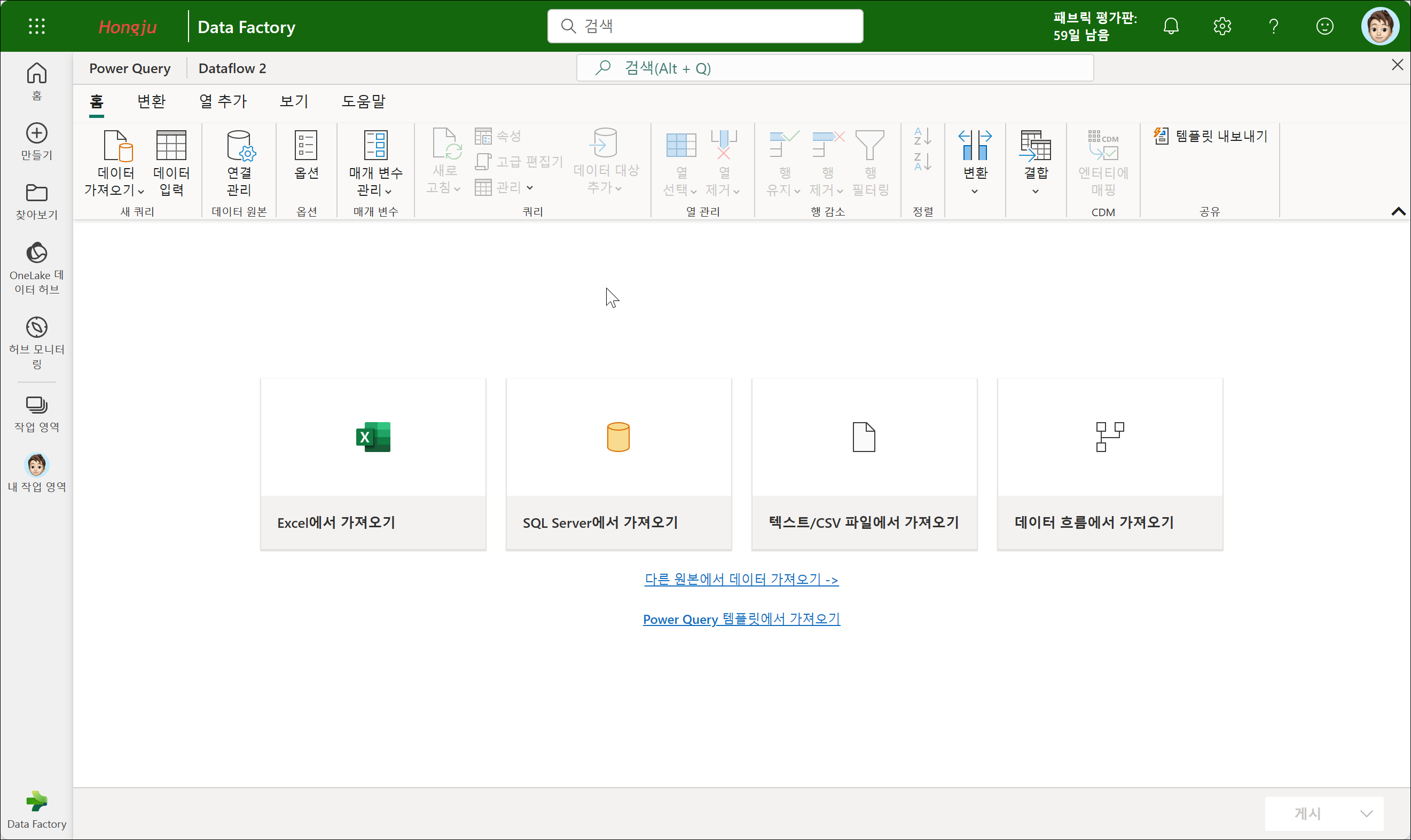 Dataflow Gen2를 알아보면, Power BI에서 제공하는 데이터 흐름입니다. Power Query Online 으로 웹 브라우저에서 파워쿼리의 기능을 사용하여 데이터 가져오기, 변환, 쿼리 결합 등을 손쉽게 작업할 수 있습니다.