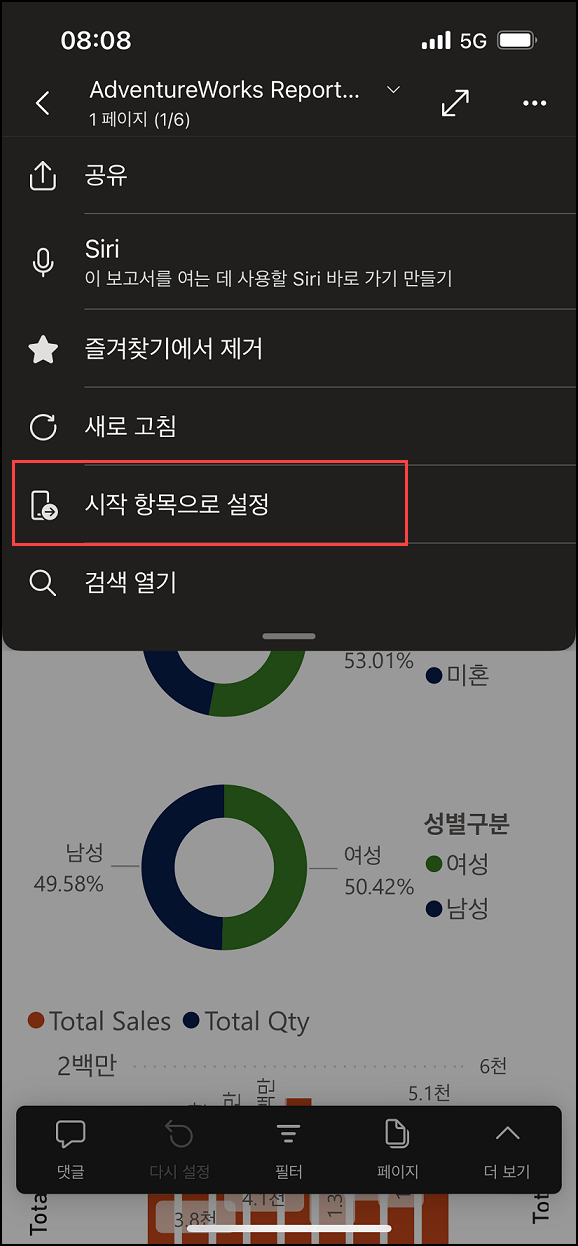 모바일 앱에서 시작 항목을 설정하도록 업데이트되었습니다. 앱을 열면 바로 시작 항목이 바로 나와서 보고서 액세스를 보다 더 쉽게 할 수 있습니다. 시작 항목은 하나의 보고서만 설정됩니다. 설정하는 방법은 모바일 앱에서 보고서로 이동하여 … 에서 ‘시작 항목으로 설정’을 클릭하면 됩니다.