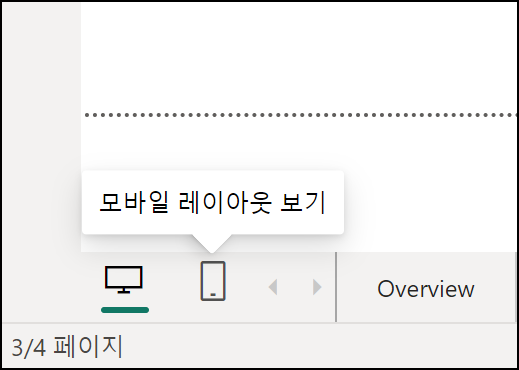 Power BI Desktop을 열면 왼쪽 하단에서 모바일과 데스크톱 아이콘을 확인할 수 있습니다. 모바일 레이아웃 보기를 클릭하면 모바일 레이아웃 화면으로 손쉽게 이동할 수 있습니다.