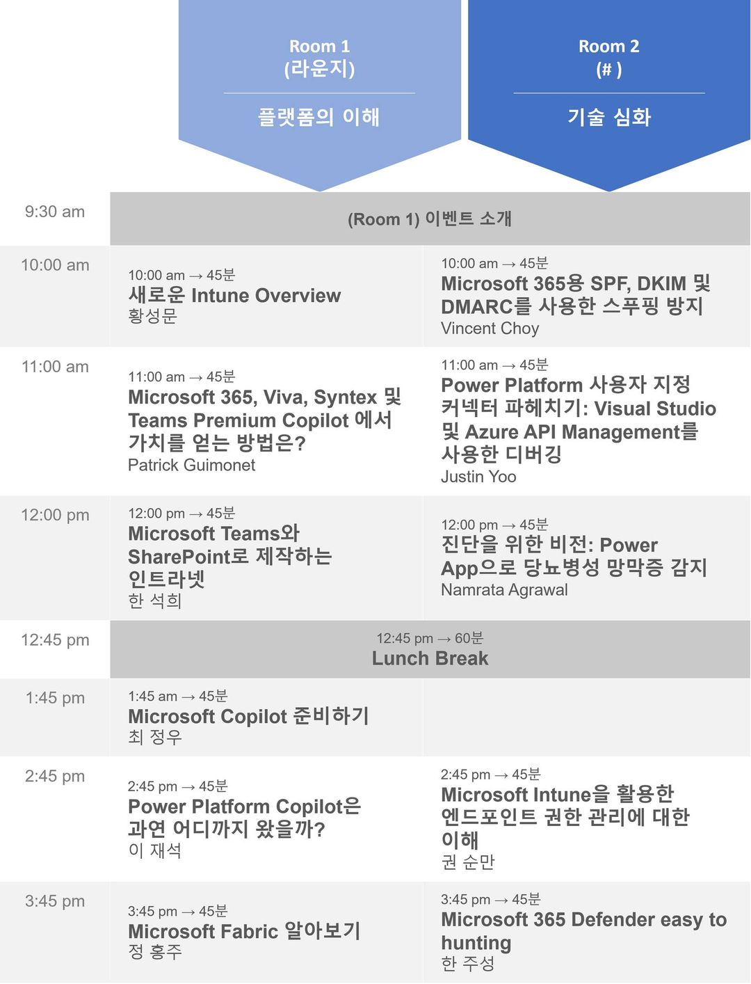 이번 행사에서는 조만간 만나게 될 Microsoft Copilot에 대한 데모를 비롯하여 Microsoft 365를 통한 업무 생산성 향상 및 정보 보안과 관련한 다양한 주제가 제공될 예정입니다.