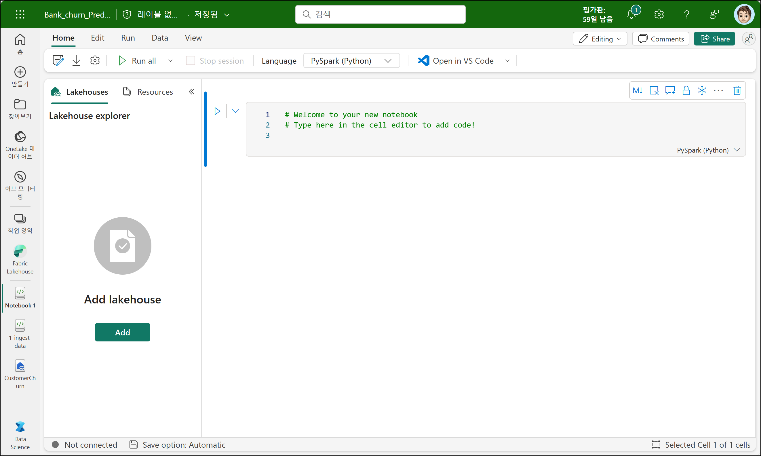 노트북을 생성해보면 빈 값만 있어, Data Science 홈에 나오는 샘플을 이용해보는 것이 더 효과적입니다.