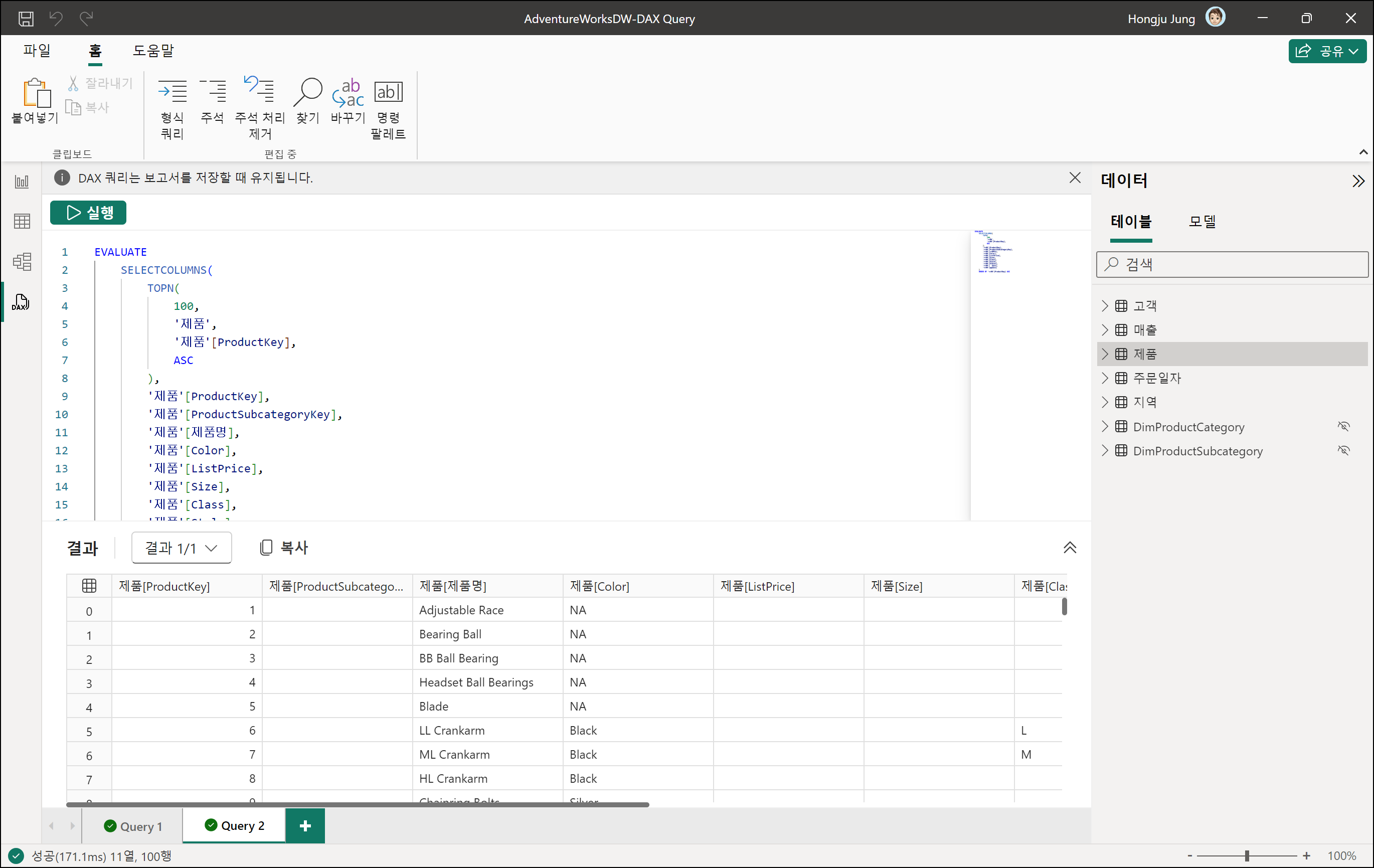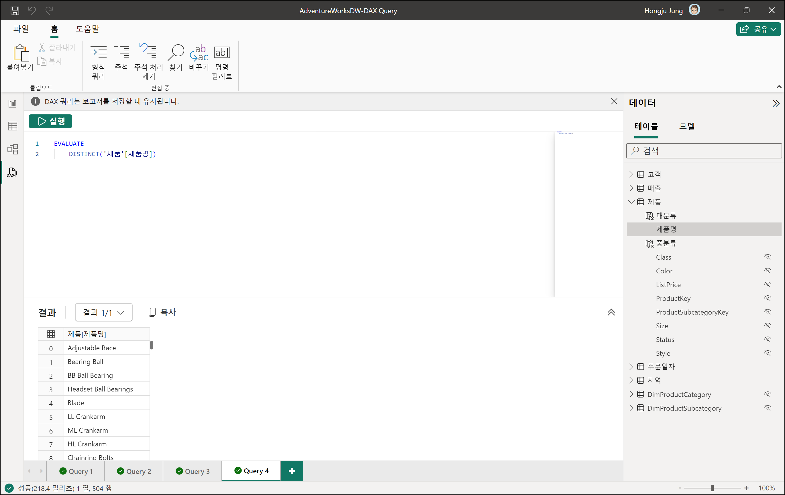 DAX 쿼리 보기를 이용하여 내 데이터를 통해 쿼리를 실행해볼 수 있어 아주 효과적입니다. 이번 글에서 DAX 쿼리 보기 기본 작업 위주로 알아보겠습니다.