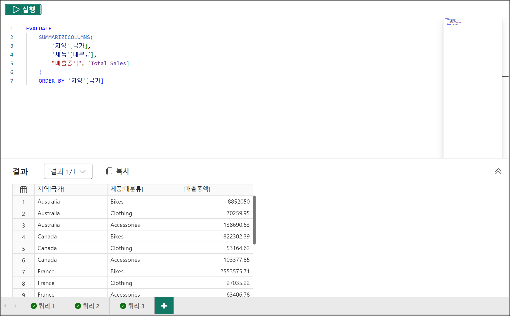 ORDER BY '지역'[국가]