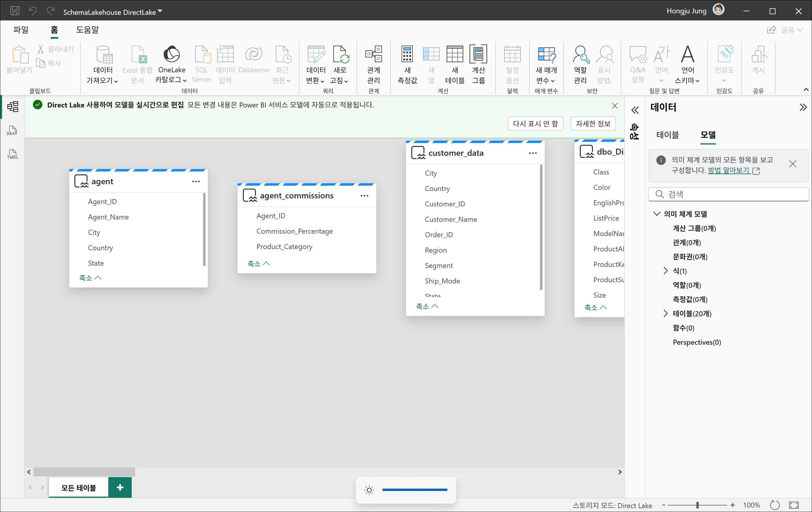 Power BI Desktop에서 Direct Lake 의미 체계 모델 라이브 편집(Generally Available)